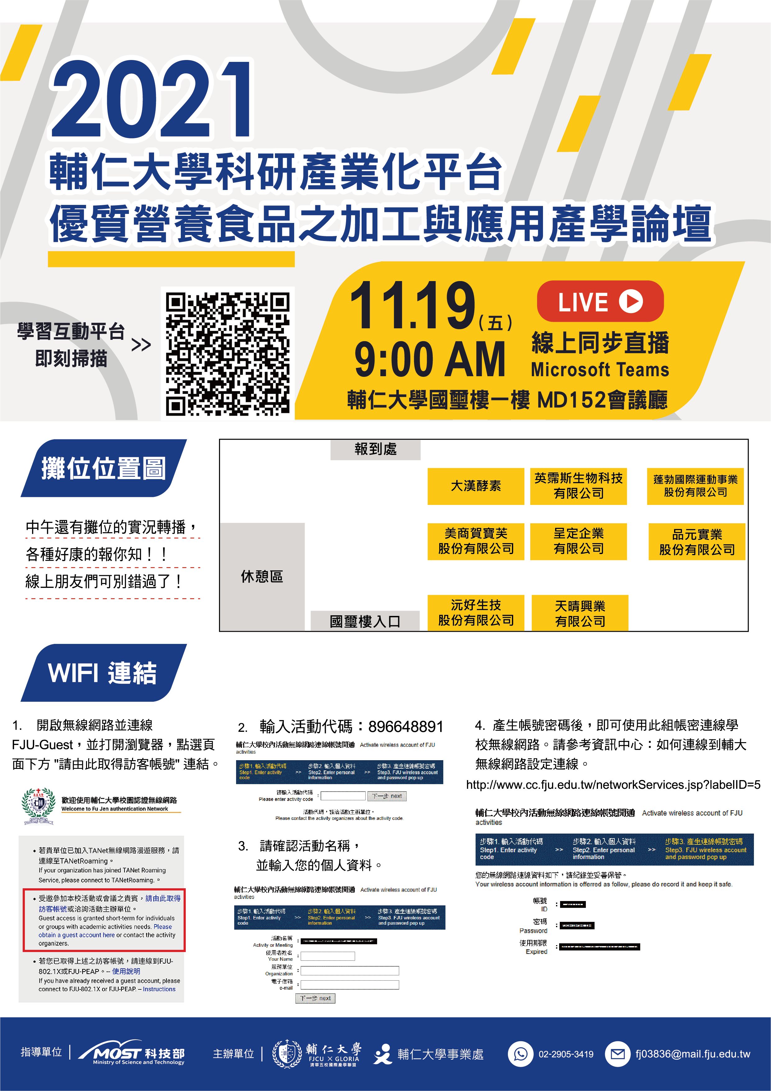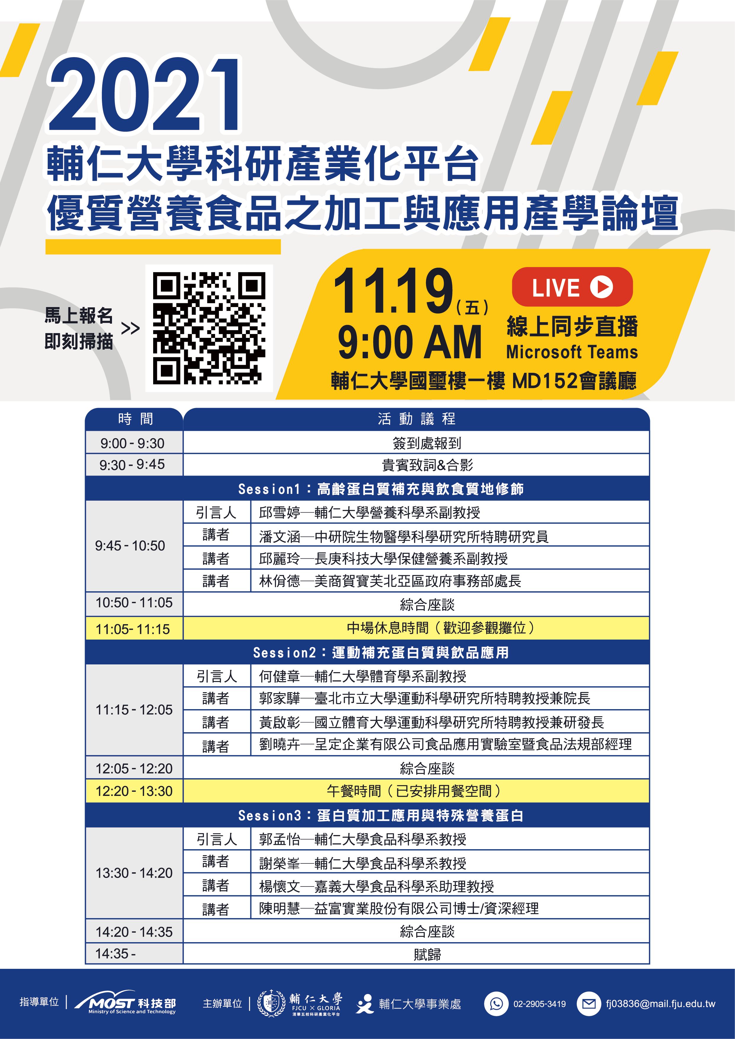 NEW!!2021輔仁大學科研產業化平台─優質營養食品之加工與應用產學論壇,歡迎免費報名參加!